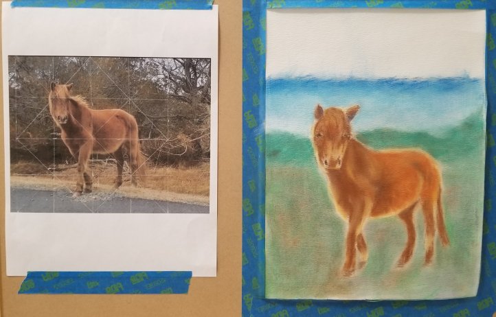 I took a photo of an Assateague island pony a couple of years ago, and have been wanting to try to paint it. Here is the photo: