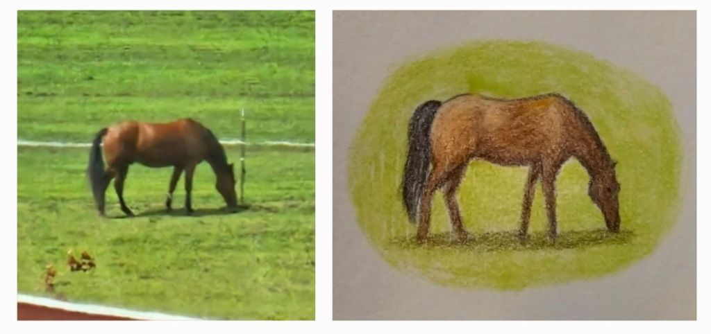 As I said in yesterday’s blog, Day 3 of my personal sketchbook didn’t go all that well. I struggled with the bumpy surface of the cold-press watercolor paper and the tiny brush that came with my new watercolor travel set. Then I made it worse by trying to fix it with colored pencils– they don’t work very well on the bumpy paper either.